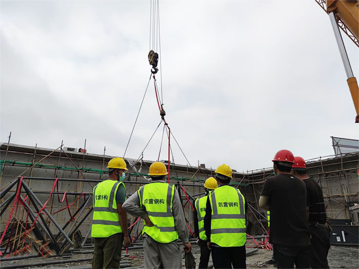 6.为确保.扬中加油站球形网架安装顺利,应有详细的扬中施工组织设计。网架安装必须保证结构的稳定性和不产生的附加变形。